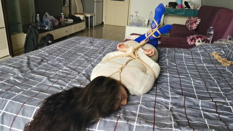› 【JS】艾可 性感蓝丝袜 龟甲紧缚 驷马挣扎
