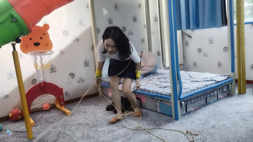 女孩租下了一间非常便宜的房子居住,但哪有那么走运的事情,这注定将会是女孩的一场噩梦之旅。就在女孩躺在床上睡觉后,房间里窜出很多条绳子奔向女孩,它们像是有生命一样缠绕着女孩的身体。当女孩醒来时惊恐的发现自己被多条绳子缠绕着。她挣脱束缚向门口跑去,但一条绳子缠绕着她的脖子向后拉去。当镜头再次亮起时,我们的主角“梦莎”已经被绳子紧紧的绑在柱子上,嘴巴也被胶带缠绕封堵着。原来一切都是房主的阴谋。他先利用非常优惠的价格诱骗单身女孩入住,然后用魔法绳子将女孩们束缚住,然后把她们贩卖给别人当奴隶。此时房主走了进来。。。