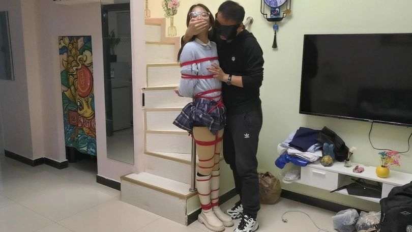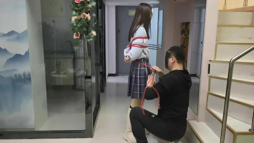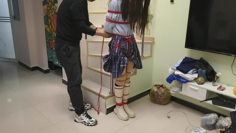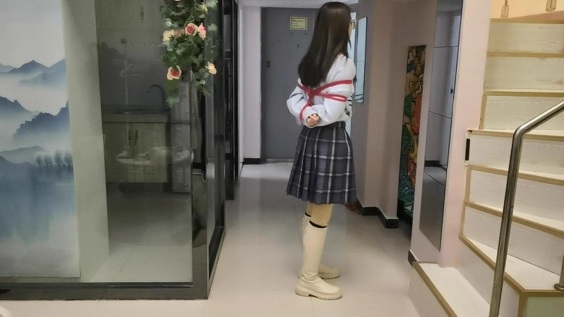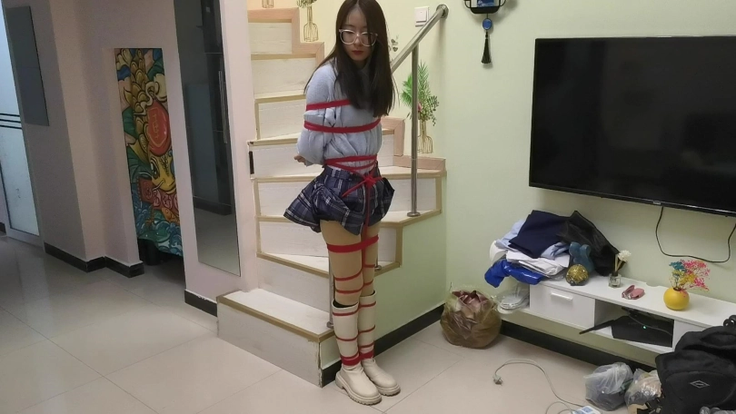 › 【JS】采文 绑在栏杆上的女孩日式全身紧缚红绳长靴