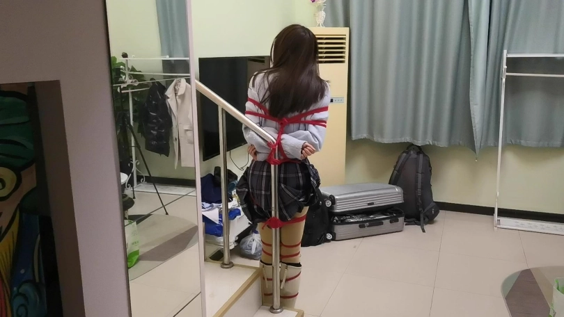 【JS】采文 绑在栏杆上的女孩日式全身紧缚红绳长靴