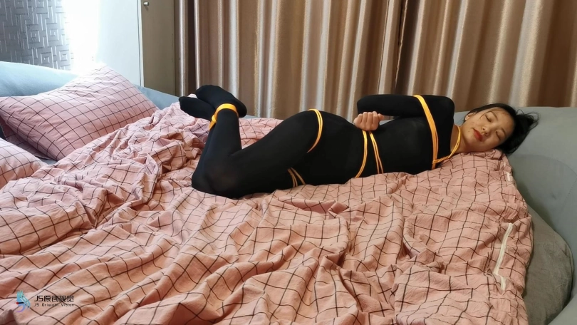 【JS】媛媛 连体衣 金色丝绳捆绑挠痒 SP 口球 眼罩 丝袜套头 玩足