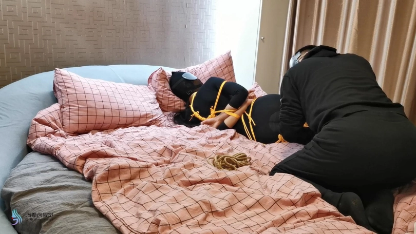 › 【JS】媛媛 连体衣 金色丝绳捆绑挠痒 SP 口球 眼罩 丝袜套头 玩足
