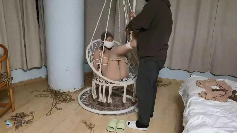› 【JS】【欣妍】肉丝连体衣吊椅缚臭袜子塞嘴口罩TK恋足DD刺激GC丝袜套腿