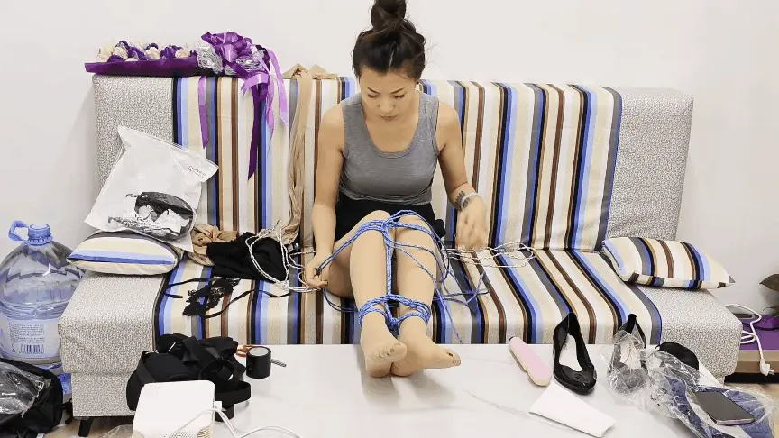 › 【睡美脚】【诺米家中自缚遭劫】自缚面罩开档肉丝袜ZWZDB捂晕抚摸翻白眼手铐