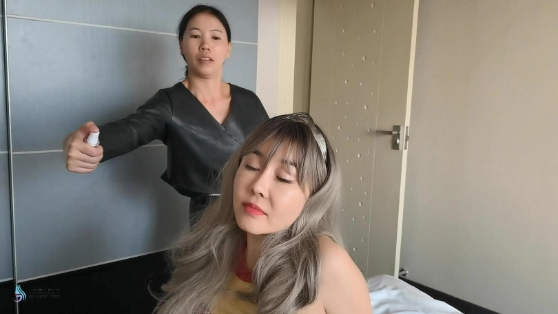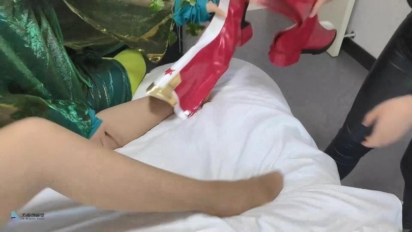 神奇女侠用自己的丝足不断的游走在毒腾女的身上。将脚放在毒腾女脸上让她闻。就在女侠玩的很尽兴的时候,毒腾女的同伙黑魔女进入房间,她悄悄的拿起药瓶来到女侠身后,朝着女侠的脸部喷了过去。女侠很快的就晕了过去。
