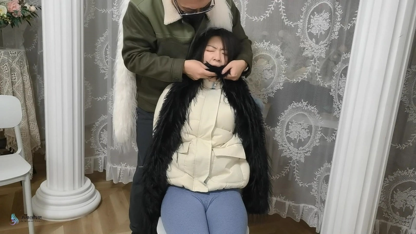 女孩在回家的路上被男人跟踪。就在女孩开门的一瞬间,男人闯了进来,并捂住女孩的嘴巴。男人用胶带将女孩的手脚捆绑了起来,嘴巴也缠绕住,将女孩放在椅子上。男人在衣柜中找到女孩的一些衣服和围巾。解除女孩嘴上的胶带,用围巾缠住女孩的嘴和脖子。男人离开,留下女孩独自的挣扎着。