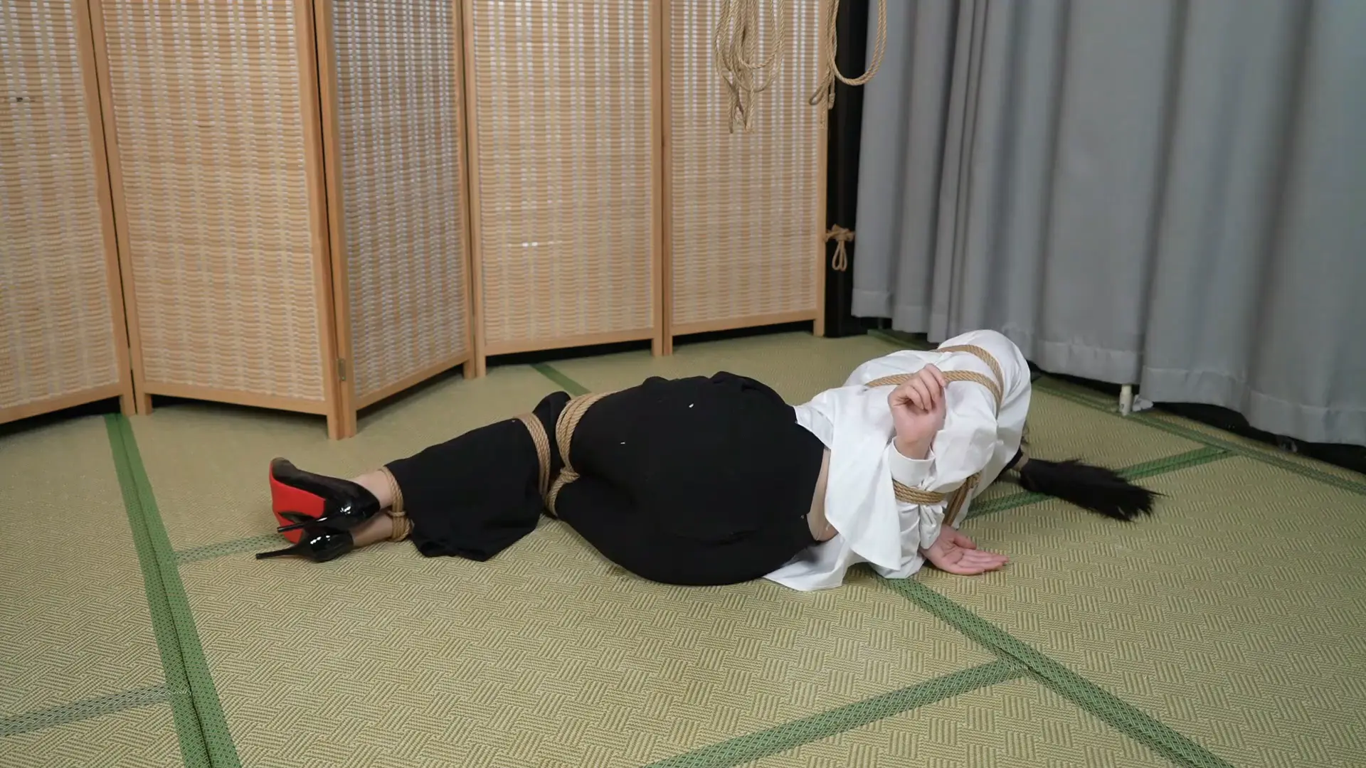 穿着红色高跟鞋的她不断的扭动着被绑着的双脚,肉丝玉足在绳子的衬托下显得那般格外美丽!此时她的上身穿着这白色衬衣的她正被歹徒绳索缠绕,双手被反绑在身后,使得她动弹不得。“呜呜呜呜 ~!(你要干嘛~!)”可怜的求救声也被唤作一阵阵呜咽,而她的双眸也被眼罩封闭的死死的,这不由得让她在地上绝望挣扎着......