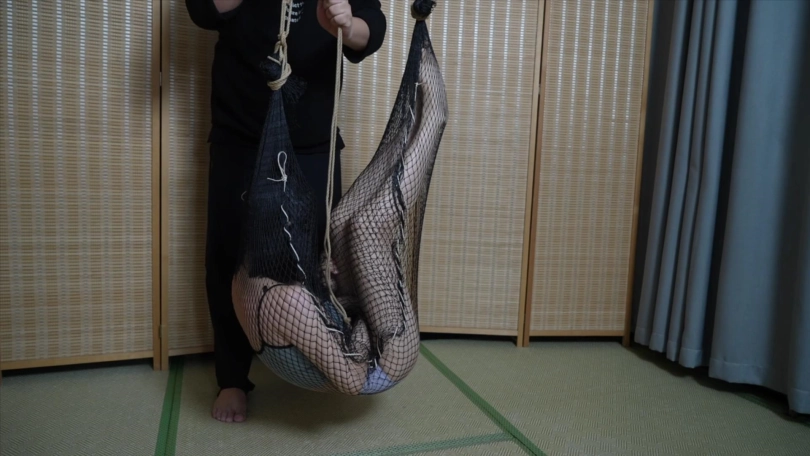 挣脱失败被装到渔网里面,悬吊起来