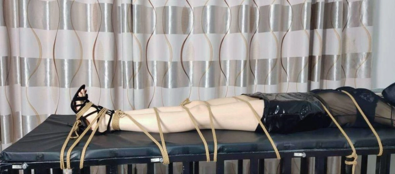 性感长腿被紧紧的绑在牢笼的上方,胸部被散鞭狠狠的抽打,[X_X]还被[X_X]玩弄着。