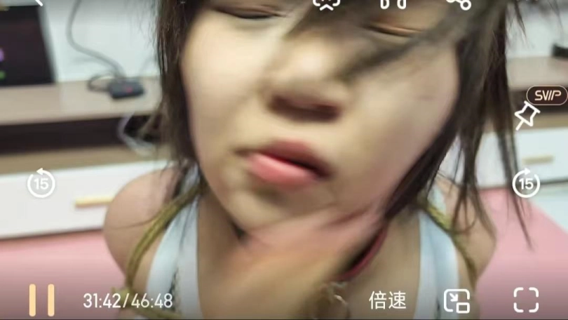 小文一身白丝被紧缚调教,最后还有神秘男子享受小文胸部蹭腿福利,大力揉胸,耳光把脸都打变形了,眼泪不由自主的流了下来,享受着屈辱的同时一边接受着下一步的调教。