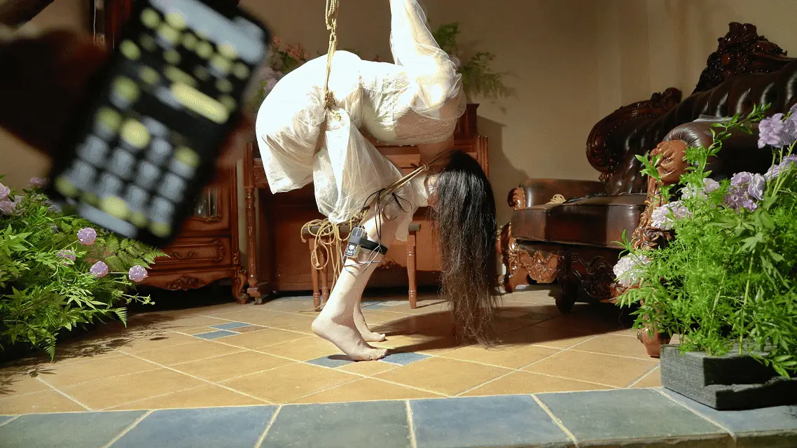 晚餐时温雅小姐不小心打碎了主人的盘子,主人决定用十分折磨的方式将温雅小姐放在钨丝灯下进行惩戒,不到一会儿温雅小姐就被汗水浸湿小腿也止不住的颤抖,除此之外还有脉冲一刻不停的贯彻全身,一直到向主人求饶才得以解脱。