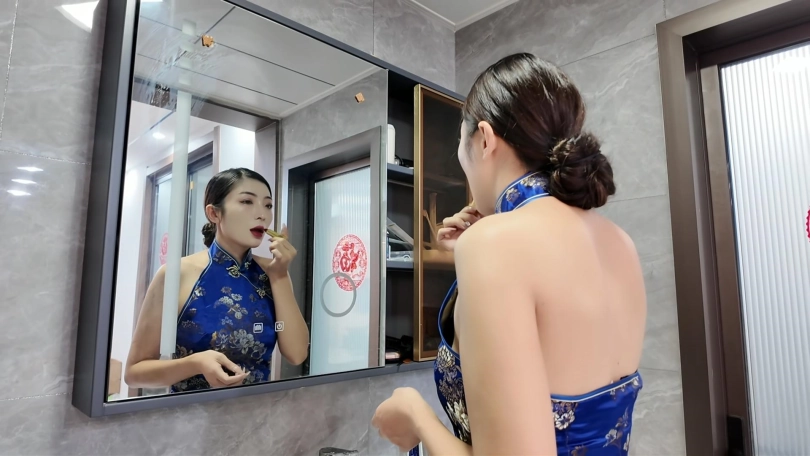 模特佳佳在家换上黑丝,蓝色旗袍准备出席一个活动,不料被早已藏在家中的歹徒袭击捂晕,捆绑到椅子上各种折磨,最后被捆绑关到衣柜里面,佳佳费力挣脱逃出去,又被歹徒抓回侵犯