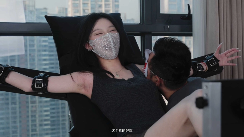 然后今天的ee虫虫小姐姐到了,把她绑起来后,悠悠开始对她痒刑折磨。虫虫其实挺怕痒的,不过悠悠手法有点青涩。