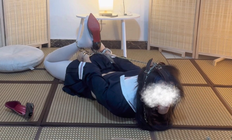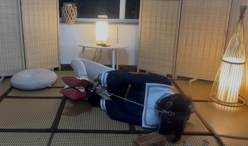 第一次自己体验这个姿势,不得不说真的很有感觉…把所有钥匙用定时锁锁在木盒子里面,保证在时间结束之前打不开木盒子,然后把马具口球头顶的环和脚用锁链连上,再铐上手铐形成驷马,然后就享受咯~