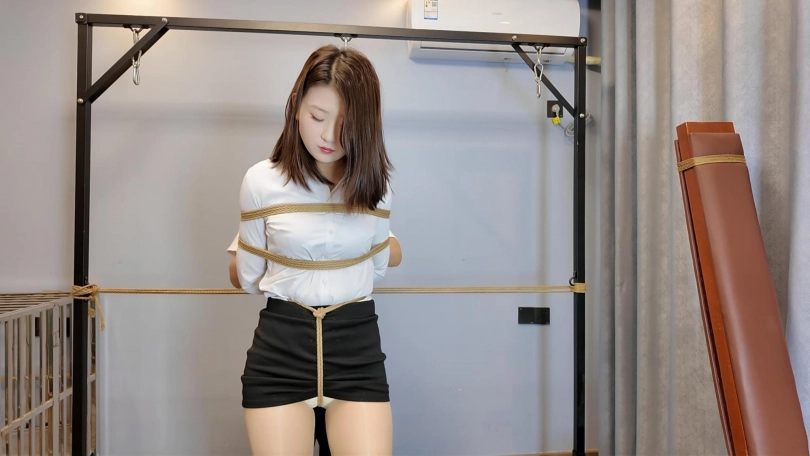 给晓琴进行M腿捆绑吊,这个姿势非常考验模特的耐力,晓琴也是不辱使命的完美完成
