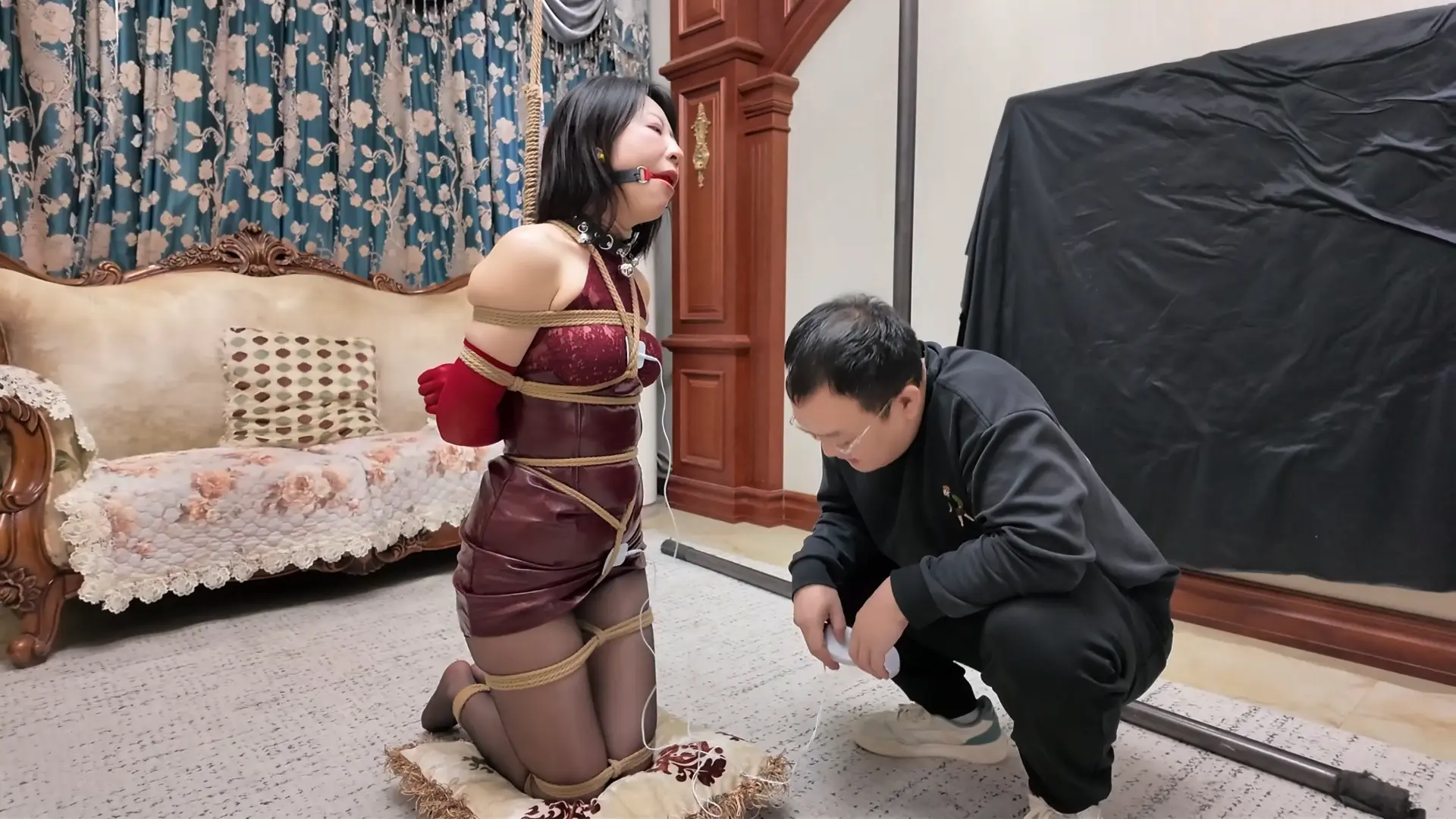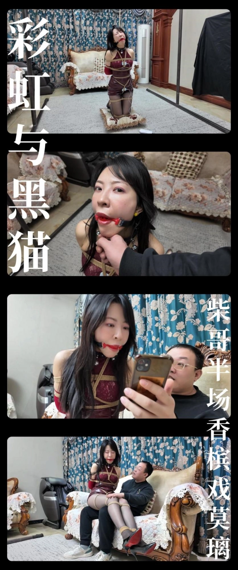 被一番严密捆绑后,柴哥先让我们“黑猫”探长享受一下“理疗”服务!