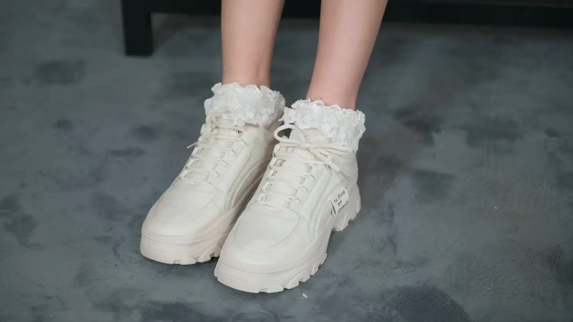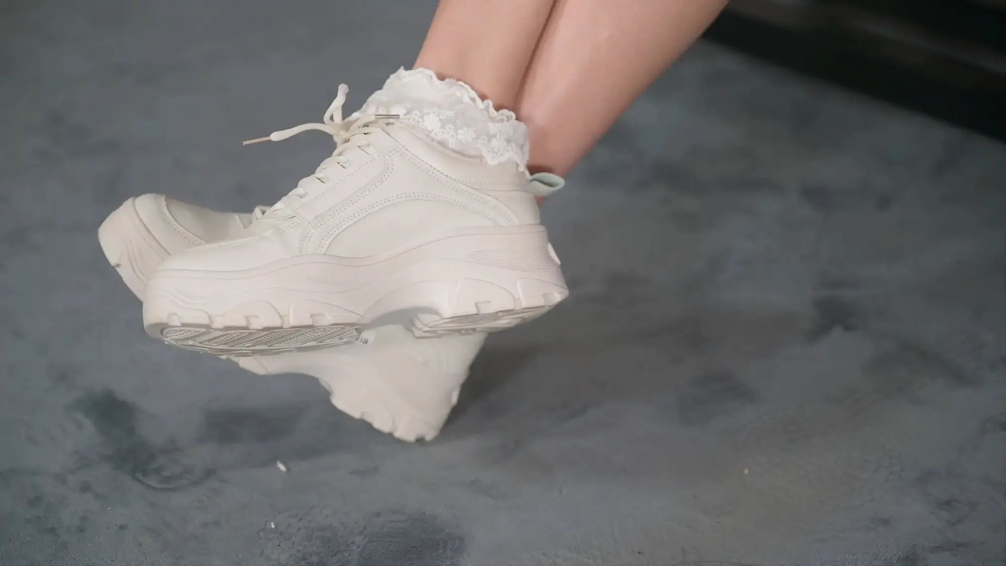 › 【撒琅制造】【美腿玉足系列】高挑足球短裙玫瑰配花边棉袜运动鞋加裸足--(无捆绑)