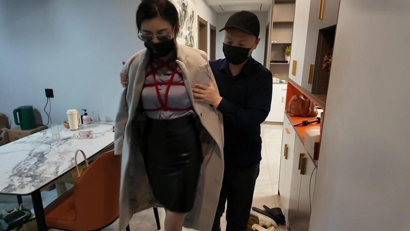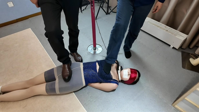 把佳佳胶带堵嘴,带口罩,捆绑送货上门,被捆绑好蒙上眼睛吗,跪在房间等待客户调叫,没想到竟然一下子进来两名神秘男子,最后又有一名男子加入,开启了三人调叫大戏,捆绑,堵嘴,蒙眼,抚摸,按摩,推搡,踩踏,各种元素拉满...那种无助感深深的真实体现,这也是我最喜欢的系列