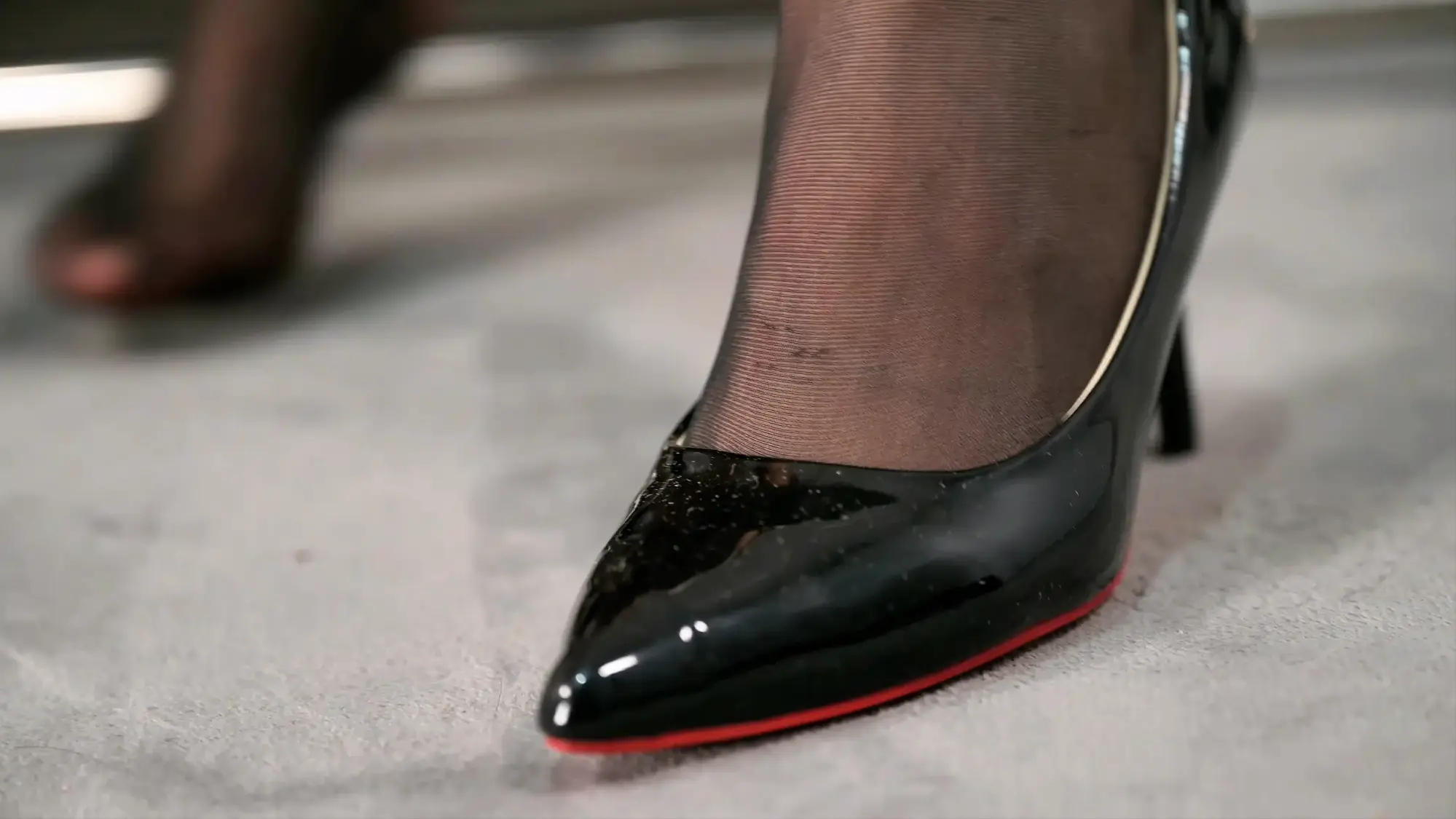 › 【撒琅制造】【美腿镣铐系列】雪碧黑丝高跟OL情趣镣铐--戴铐行走