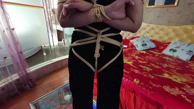 新人凌熙,疫情期间无聊,过来体验捆绑。身体柔韧度还不错,第一次面对镜头就很放得开,绑上之后还挺开心,在镜子面前照来照去,捆绑过程琳洛在一边观看学习(估计是对女绳师感兴趣,想当绳师吧)。