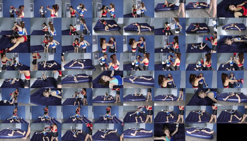 Emma (Blue) vs Eva (Red) fights each other in a boxing match. Whoever scores 3 knockouts first will win. Emma gets the first 2 KOs but Eva makes a comeback. Emma after getting 2 devastating KOs from Eva has lost a lot of stamina and she easily is beaten by Eva. Eva wins but she is not letting Emma get away that easily. Eva starts the beating on the poor Emma`s lifeless body and humiliates her with a final knockout that sends her to the emergency room.