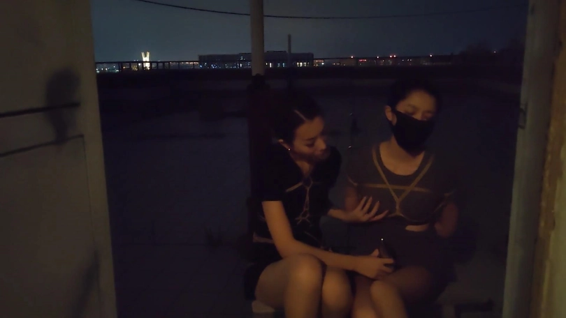女女的题材 诺米和雅熙自缚丝袜塞嘴后来到了居民楼道内,两女在楼道缠绵了一会儿后就来到了楼顶平台,突然诺米就掏出了[X_X]!因为雅熙被堵着嘴只能呜呜直叫,诺米见状也掏出了丝袜把自己的嘴巴也堵住了,然后一人一个[X_X]开始长达好一段时间的刺激,接着诺米直接拉着雅熙,把她按到了墙上,正在雅熙迷惑的时候,诺米的嘴巴靠近了雅熙的双腿之间....