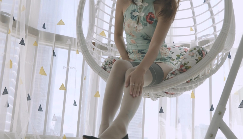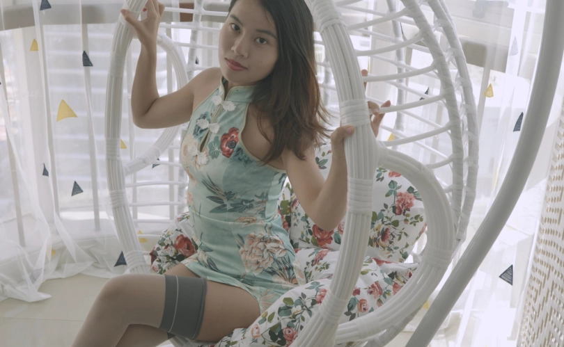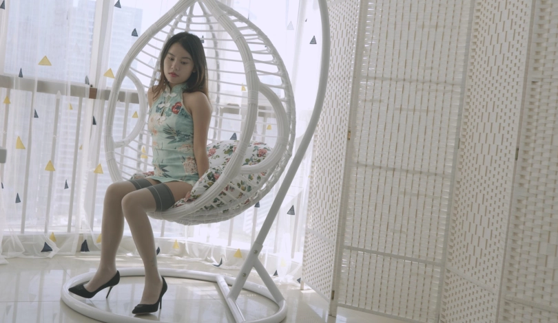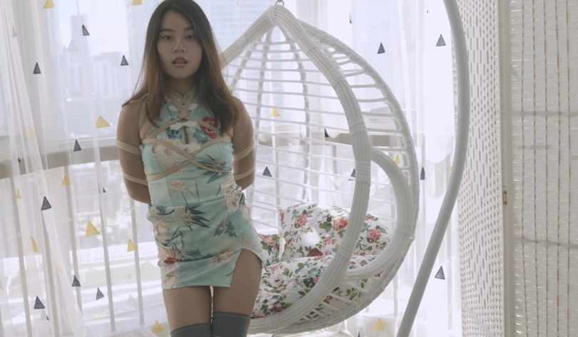 【4K映像】琪琪的夏日午后,摇篮,旗袍,长筒袜,高跟鞋,丝袜勒嘴,五花大绑。