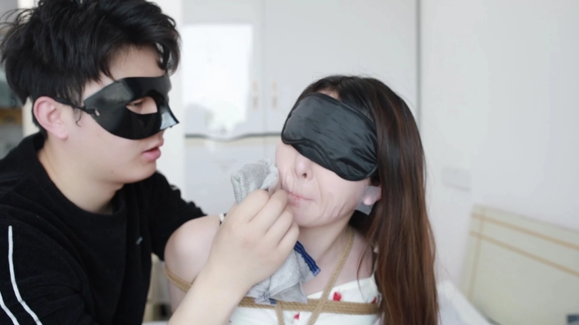 先封嘴后上绑,欧式直臂捆绑,绑上腿,膝盖,脚,升华的美腿就此诞生……