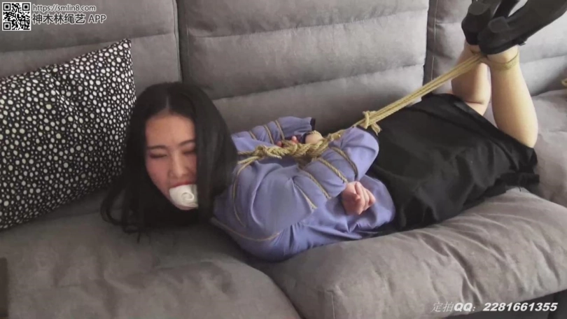 现代非常少见的具有古典气质的美女李菲五四装被五花捆绑,毛巾塞嘴,佩戴脚镣行走,后又被捆成驷马,放置在沙发上挣扎。。。。。