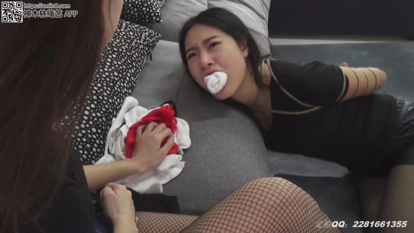 喜欢堵嘴的漂亮女主人一个人在家玩堵嘴游戏,忽然一个女小偷溜了进来,女主人来不及拿出嘴里的毛巾,就从背后勒住了女小偷的脖子,并用自己嘴中的毛巾塞住了女小偷的嘴巴,二女你来我往,发生激烈争斗。。。。。。