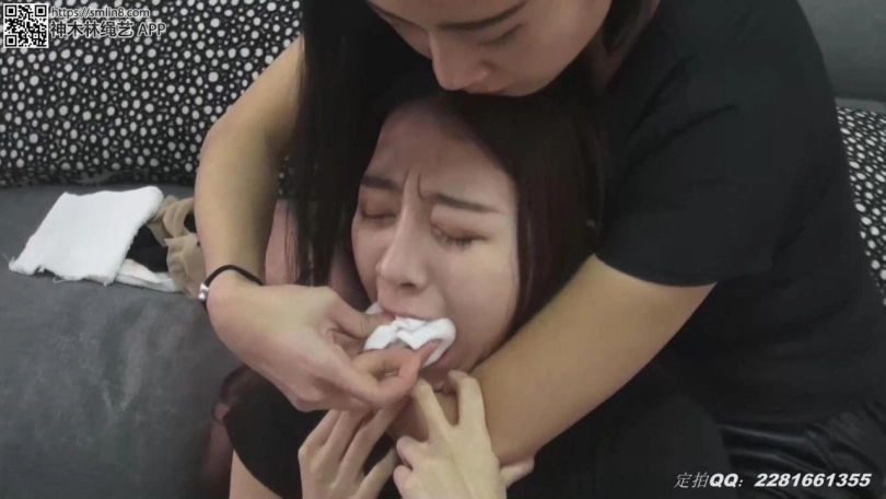 趁女主人下楼拿快递的时候,女小偷先蹭开了堵嘴物,又挣脱了绑绳。。。。女主人回来后刚发现小偷脱缚了,就被女小偷从后面勒住了脖子,女小偷为了报复,反复的折磨女主人,最后小偷把女主人捆绑堵嘴后逃走,女主人醒来苦苦挣扎。。。。。