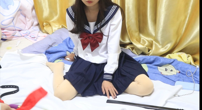 【得意客】约绑黑丝水手服真实大学生妹子 真实捆绑 首次震动感受