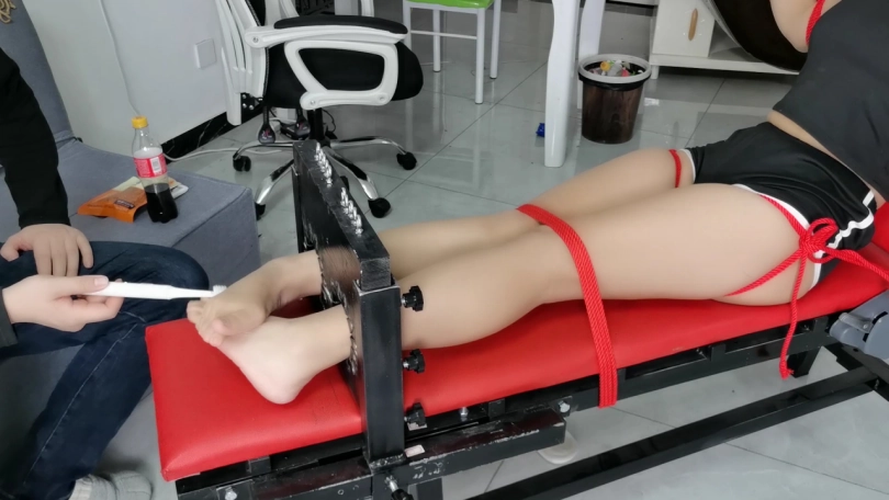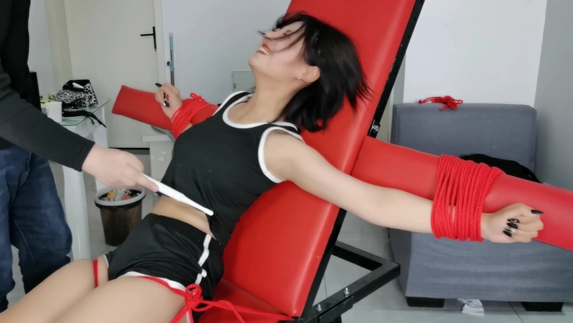 诺一小姐姐初次体验老虎凳,不情不愿得还是被我强行按上去了,被绑在上面还一脸不服气,居然向我竖中指,那我就不能客气了啊,直接上最狠得电动牙刷,小米高频率还是相当给力得。顺便让小姐姐知道中指得正确用法嘿嘿。