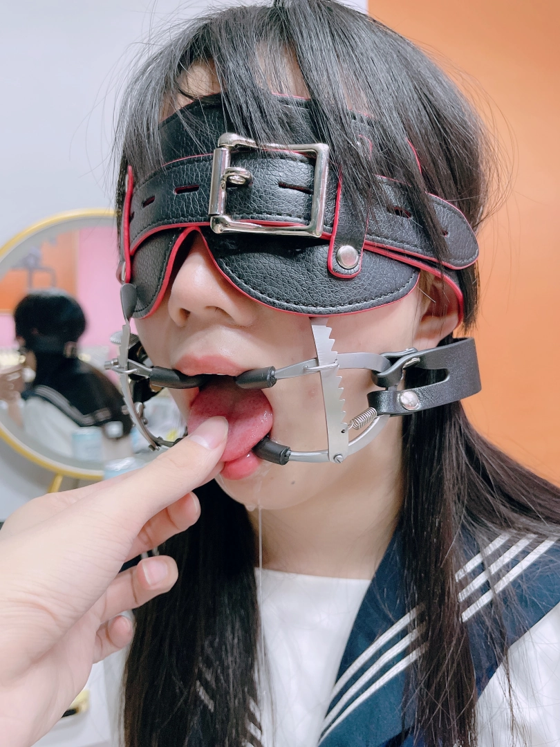 是茶茶小姐姐自拍的呢~主要是测试茶茶佩戴金属扩口器口枷的流口水情况,然后用手指玩弄茶茶可爱的小舌头~喜欢金属口枷和流口水的朋友们不要错过哦。