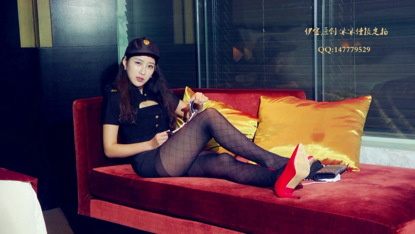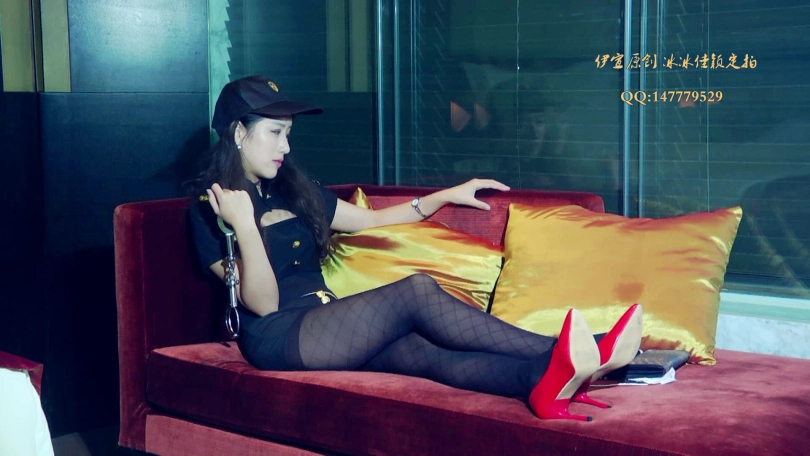 【伊宣】冰冰热裤制服欧式捆绑,片头有金属展示