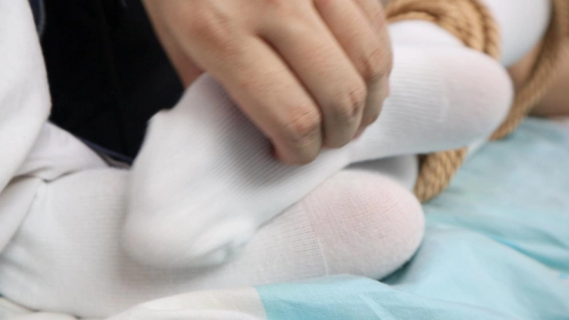 穿着水手服+长白棉袜被玩弄带了超长时间的口球,脚底tk大法,依然用绳子进行严密的腿部束缚与股绳,白棉袜的脚底尽收眼底,tk挠遍小姐姐全身拼和着重于脚底,呜呜的挣扎的挣扎~ 第一视角和第三视角都有