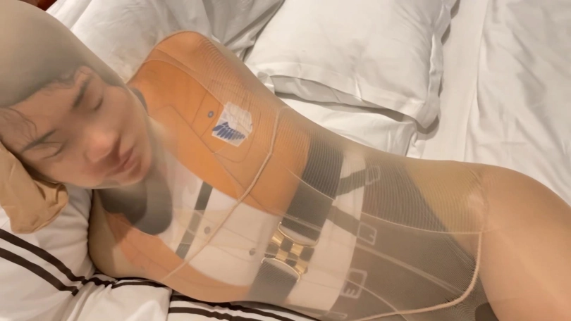 【木伊学社】腿好穿亮丝!美女越有偶像包袱、就越该套上丝袜,丝袜套头全包木乃伊!五官变形、胶带束缚、震动伺候……