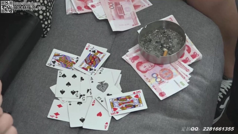 甜甜开了一个小棋牌室,生意冷清,这天,一个老主顾马老板带着两个朋友来棋牌室打牌。甜甜对三人的富有很是羡慕,马老板提议让甜甜和他们玩个游戏:谁赢了牌谁就可以把甜甜捆绑起来,而甜甜被捆以后,每坚持一分钟就有10元的收入。。。。。。