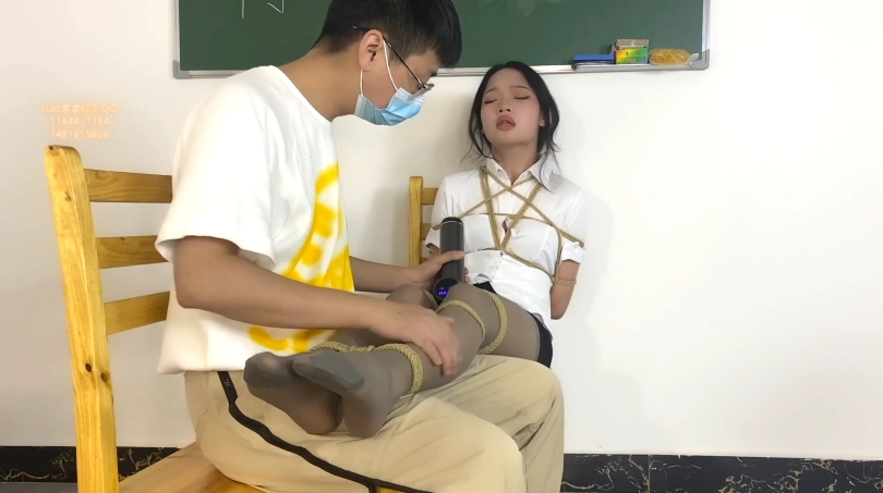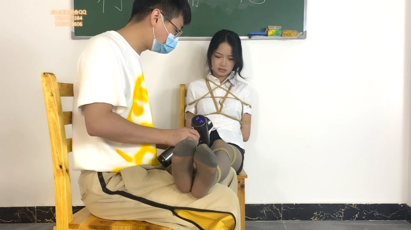 第二天正式上班,工作人员拿来一套空姐服让素素换上,并且练习走秀,走完秀把素素固定在椅子上脚也完全固定好,拖了高跟鞋进行tj和tk,素素求饶也没有用,最后还把素素绑到四方桌上,进行tj到gc后离开,让素素这样呆着!