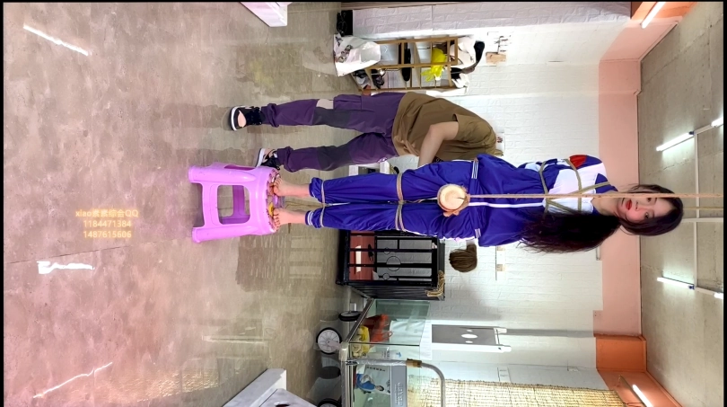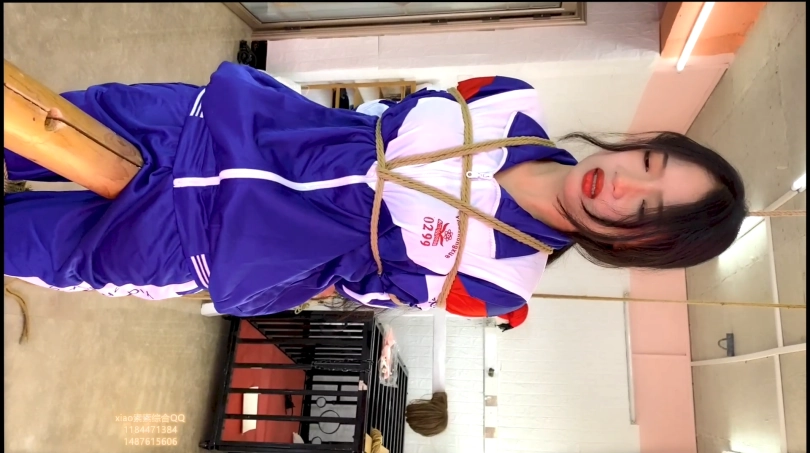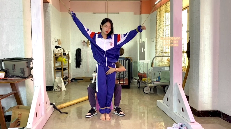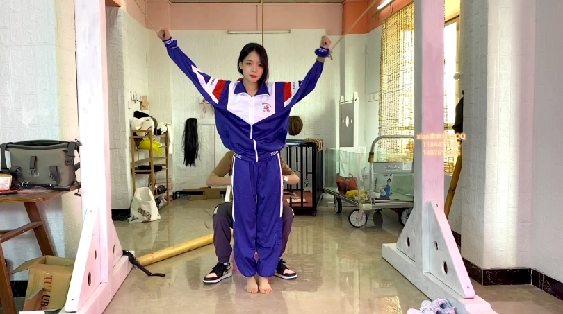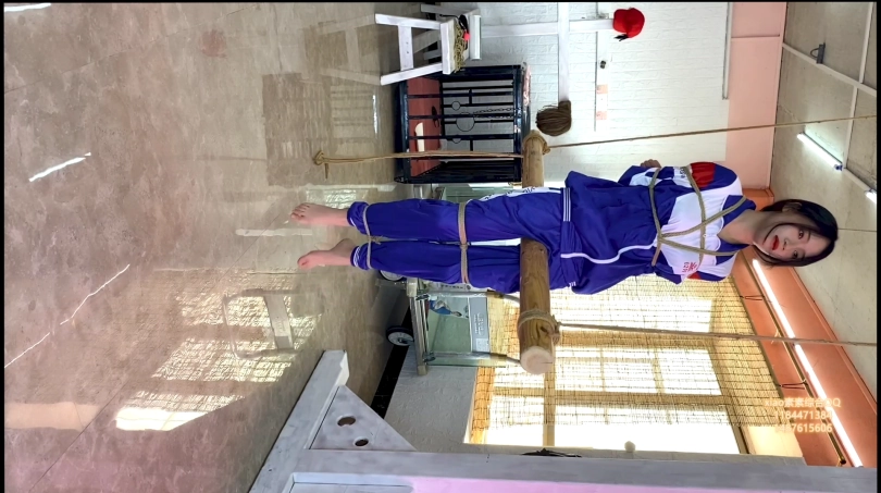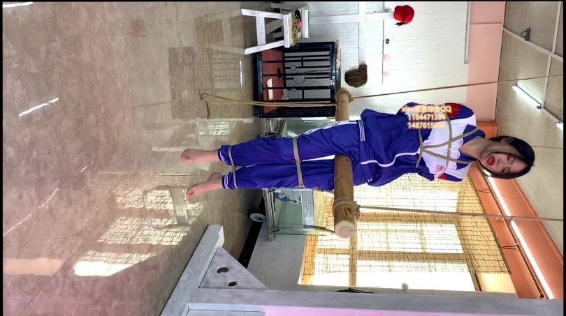 【xiao素素】学生服被大字捆绑,双脚离地。
