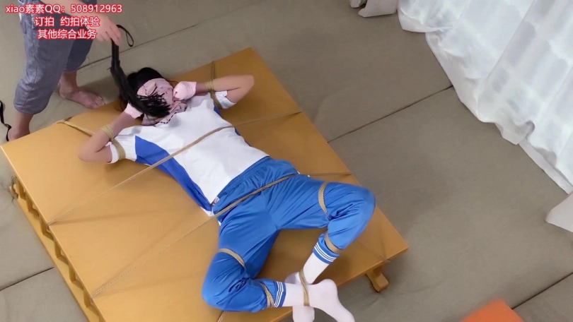 此时的xiao素素已经被完完全全的束缚好动不了,xiao素素想叫,被大叔用大号的马型口球堵上嘴巴 蒙上眼睛的xiao素素嘴巴不能说好,全身被固定更