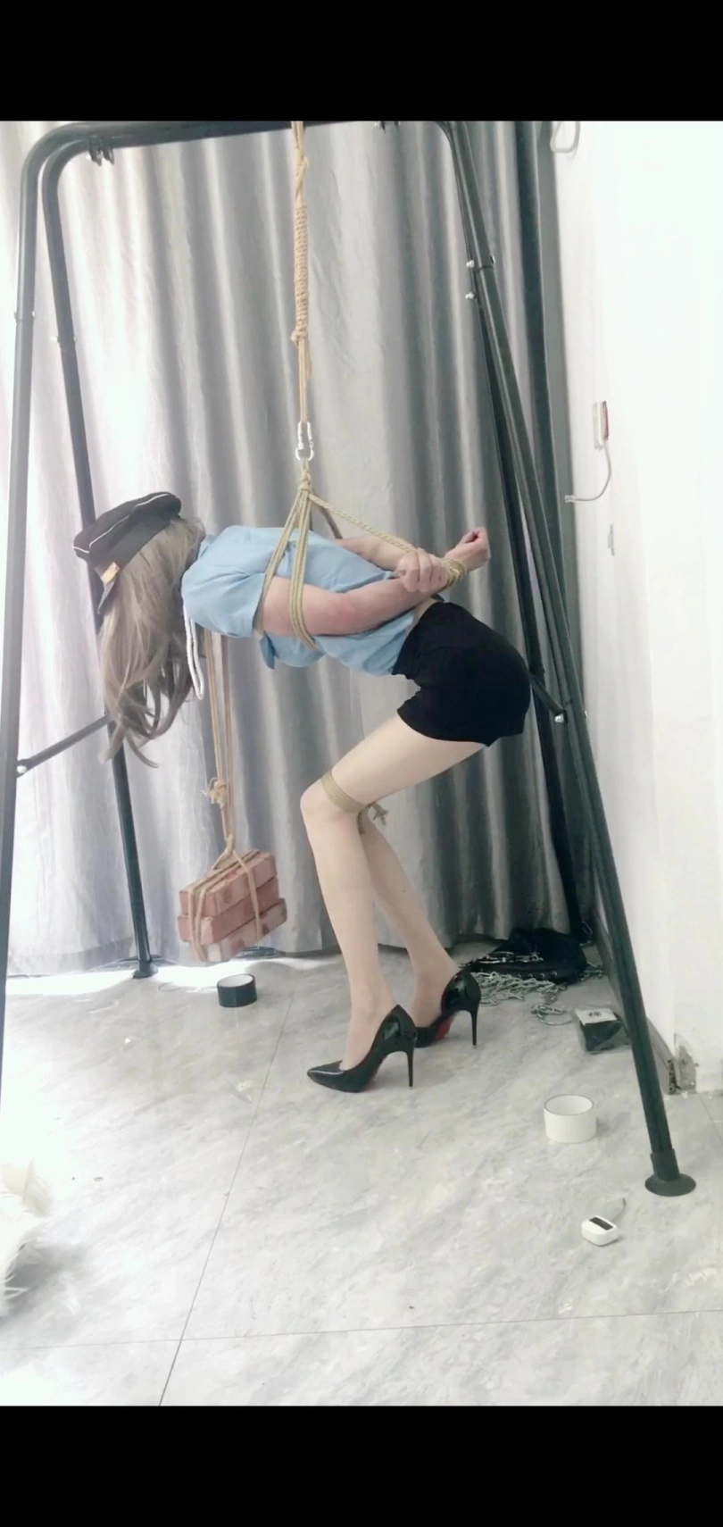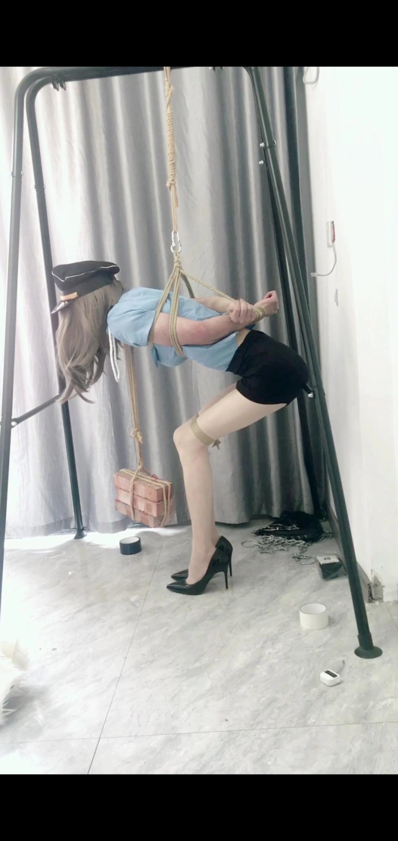 好久没玩了,因为自己在家有事没时间,这次也是抽空玩一下,至于为什么想到玩这个,也是家里在装修,看到有砖头,而且碰巧电视剧看到了有这样一个拷问片断,所以想试一下。而且留在这里的衣服也只有这两套了,将就用吧!之前也有玩过沙袋的,但是那一次还是能接受,不至于特别难受,但是这次可是真的差点在手臂上留下伤痕,虽说只有三块砖,快有两个沙袋重了,将近二十斤,还是特别重的,而且这次还是用这种吊缚的方式来完成的。重心不是在脖子上就是在手臂上,真的是每分每秒都在受着折磨,等我解下来的时候真的吓了一跳,手臂一片通红发紫,而且双腿捆的也特别的紧,要是时间在久点可真是会留下痕迹的。这大夏天留下痕迹可就太尴尬了,拍摄完成可是累死我了,全身都是酸痛的,不过有空了有新想法自然要好好的体验一下。不过小伙伴们可不要轻易尝试哦~