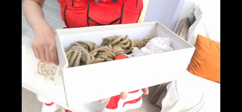 柳洋躺在床上拿着手机逛着淘宝,嘴上说着:“唉!又到了圣诞节了,不知道明天有没有人送礼物。”于是关上灯准备睡觉。第二天柳洋起床听到有人按门铃的声音,于是打开房门却没有看到任何人,只是地上有着一个盒子。柳洋疑惑的将盒子带回自己的房间中,疑惑的看着盒子,突然开心的说:“难道这是圣诞节的礼物。”于是满怀期待的打开盒子,但是盒子里面居然是几捆绳子,以及塞口球,以及一双白色长筒袜,柳洋拿着绳子奇怪的打量起来,就在柳洋手碰到绳子的时候,绳子就像活了过来一样,将柳洋的双腿绑了起来,双腿被捆上了一道道绳索,kua下也被捆上了一个股绳。柳洋惊讶的说:“这是怎么回事啊,这绳子怎么会自动将自己捆起来啊。”不等柳洋继续说话,柳洋的双手也被盒子中的白色长筒袜套了起来,盒子中的塞口球也被塞进了自己的口中。柳洋不知所措的想要将塞口球拿掉将腿上的绳子解开,但是并没有发现绳结。而这个时候仿佛有一种魔力,将柳洋的双手往身后扭去,阻止着她的所有动作,在反抗了几次之后,终于柳洋的上半身也被绳子捆了起来。无助的柳洋只能拼命扭动自己被绳子紧紧捆绑起来的身体,挣扎了几分钟后。在房间中的她并不知道自己的家里已经进来了一个小偷,正在柳洋家的客厅里翻来翻去的。柳洋也在这个时候艰难的站了起来,一蹦一跳的跳到了客厅,当她跳到客厅的门口的时候,柳洋发现自己的家中居然有一个自己根本不认识的人,而正在翻着柳洋家中的小偷听到动静也是害怕的回头看了一眼,让他没想到的是站在自己不远处的居然是一个被绳索紧紧捆绑起来的美丽女子。两人就这样静静的对视了一会。眼镜男子先回过神来说:“我去这是怎么回事啊,这家中居然还有一位被绑起来的大美人。”柳洋也回过神来,转身向房间中跳去。眼镜男子看到柳洋想跑,很快就将柳洋追上,抱到了客厅的沙发上。男子坐在沙发上抱着柳洋,男子怎么可能浪费这样的机会,准备先惩罚一下柳洋,开始拍打柳洋的臀部,拉动柳洋的股绳,挠着她的脚心。过了一会男子满足的说:“怎么了美女,你这是被绑架了,还是跟自己的男朋友在玩着游戏啊。”柳洋呜呜的叫着,男子说:“怎么了,想说话啊,好勒。”于是将柳洋口中的塞口球摘了下来。柳洋活动了一下自己的嘴巴说:“大哥,我也不知道怎么回事,莫名其妙的就被绳子捆了起来,你能帮帮我吗?”男子:“你好像没有搞清楚状况,我是来偷东西的,就算你没有被绑起来,我都被你发现了,也省得我动手了,不过你放心,我只求财,帮你的银行卡以及密码告诉我,我就离开,不然就把你卖了。”柳洋害怕的说:“大哥别,我的银行卡都在我的皮包里,密码是106923,你要钱只管去取好了,只要你救我就行。”眼镜男子果然从柳洋的皮包里翻出了银行卡,于是重新把塞口球给柳洋戴上,说:“等我去银行看看对不对,要是对的话我在回来放了你。”在男子出去没一会就回来了,男子掏出一把小刀说:“嗯,还算你听话,不过我放了你,你不会去报警吧。”柳洋拼命的摇了摇头,男子也是按照承诺为柳洋解开了绳索。