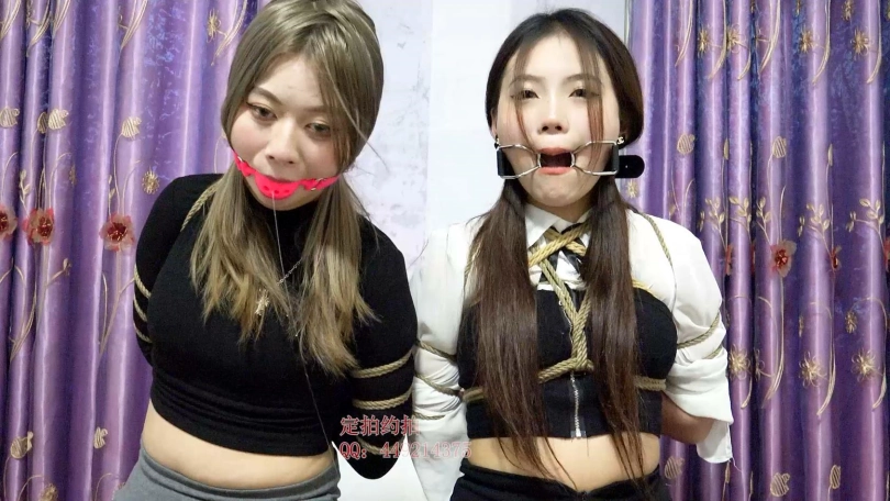 【子衿】冰冰晴晴五花口枷和超大口球聊天,原来晴晴超级怕痒的