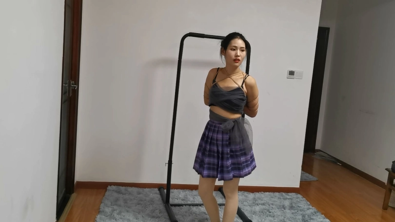 高颜值的美女青青,五官精致性格呆萌,一双大眼睛特别可爱。这次是中式五花紧缚, 然后再老规矩模特独自一人驷马放置挣扎寻找逃脱可能,不过这次用了一个大号口球,在脑后还用绳子牵引把口球的皮带向后拉,这样的话模特越想往外吐口球反而勒的越紧,正好青青的口水非常旺盛,从一戴上口球就开始流口水,最后口水把地毯一圈都打湿了,从青青的眼神里也可以看出她的幽怨了。