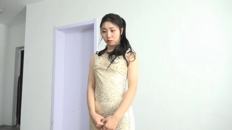 当家花旦吴晗,身材和柔韧性都非常棒,穿这套吊带连衣裙更显性感。上半身日式紧缚,绑了打结股绳,这次听了之前一位朋友的建议用绳子把模特的头发扎起来向后拉,这样模特的头就不得不昂起来,连带着整个上半身都要时不时的往上抬来缓解脖子的压力。模特非常敬业的在地上挣扎呻吟了一个小时的时间,但基本上没有什么挣扎的空间。