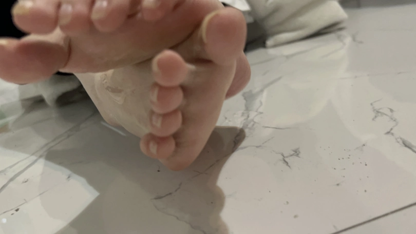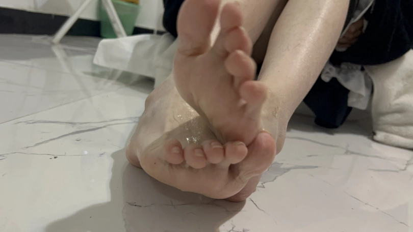 刚开始将可心的脚心涂上润滑油,让可心自己用脚脚玩不用手,玩三到五分钟让可心去浴室在自己将沐浴露涂抹在脚上自己玩并洗干净