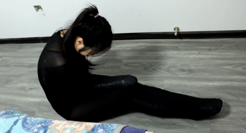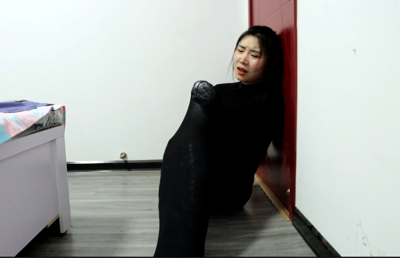 最后美女一番挣扎弄开的堵嘴,她笑着说那个地方是个陷阱,有去无回的。自己慢慢弄开拘束就可以逃脱了。但又是一番挣扎,但美女却发现自己打不开丝袜全包。无法逃脱了。她蠕动下地,用丝袜脚和身体试着打开门却发现门被锁死了。她绝望的撞门,踢门都没有用。