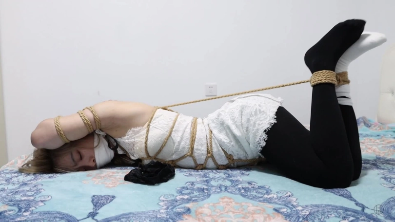 主演模特琦娜。本部剧情堵嘴爱好者不容错过,特别是严厉堵嘴的,剧中用了毛巾,丝巾,胶带,原味长筒袜,白厚毛巾,黑胶布,原味内裤,口球,原味袜子,白布等堵嘴物品,真的是把模特嘴巴堵得满满的,让模特楚楚可怜。除了堵嘴外,当然还少不了捆绑了,片中出现三种不一样的姿势,让广大同好领略不一样的美。剧情介绍:琦娜欠下一笔巨款,随后被债主上门绑架,接着就被犬缚在床上逼迫,鞭打她,还让她承认自己是狗。女主承认是狗后,又被捆在椅子上,进行花样堵嘴及各种折磨,椅子缚结束债主还是觉得不过瘾,又给她在床上来了个手绑脑后的变种驷马,然后内裤加口球,原味棉袜加原味长筒袜堵嘴,各种鞭打,最后放置,好不快活。