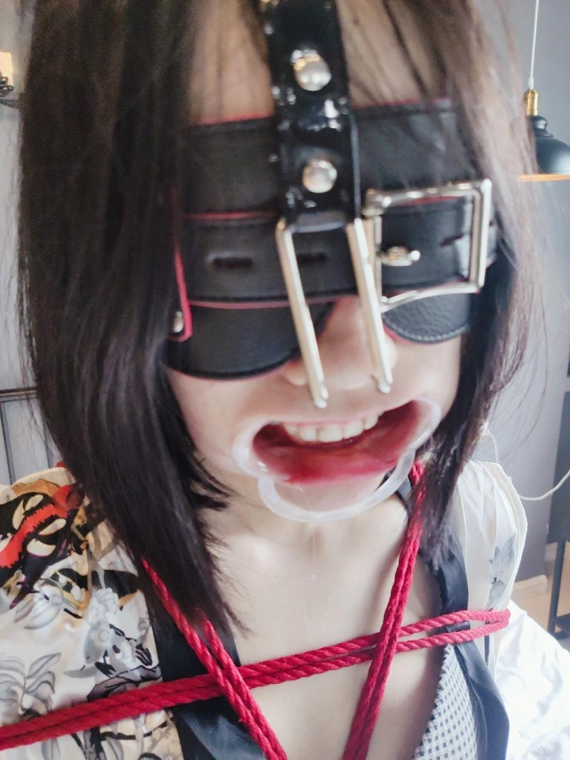 于是果断安排了眼罩、口枷、一次性医用扩口器、以及鼻钩,结结实实的安排了一场硬核羞耻强高调教。